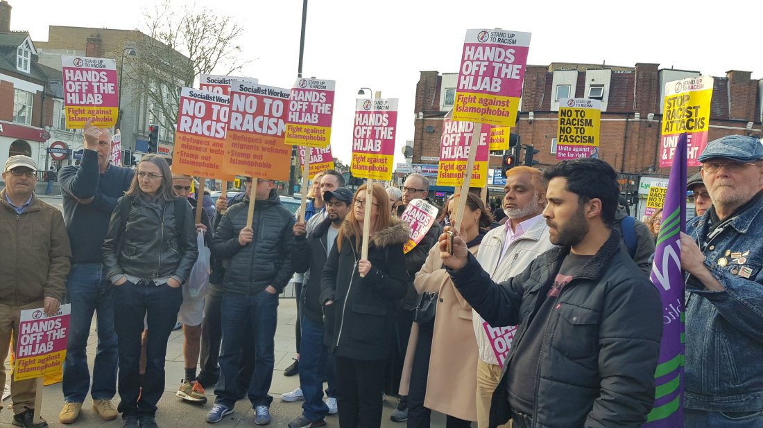 The incident horrified me and other activists in Haringey. With comrades in Haringey Stand Up to Racism, we organised an urgent protest vigil outside Turnpike Lane tube station at 6pm on Monday 1 April 2019. Although organised with only 24 hours’ notice, the protest was very well attended with nearly 150 people.